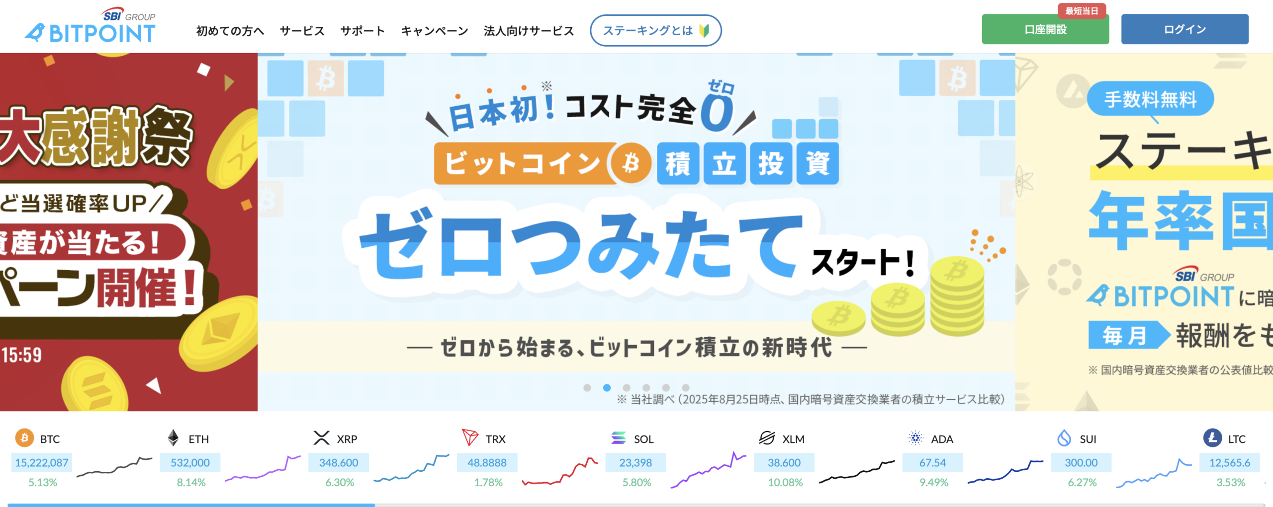 BITPOINTの強みは、積立購入とステーキングのコストを徹底的に抑えられる点です。