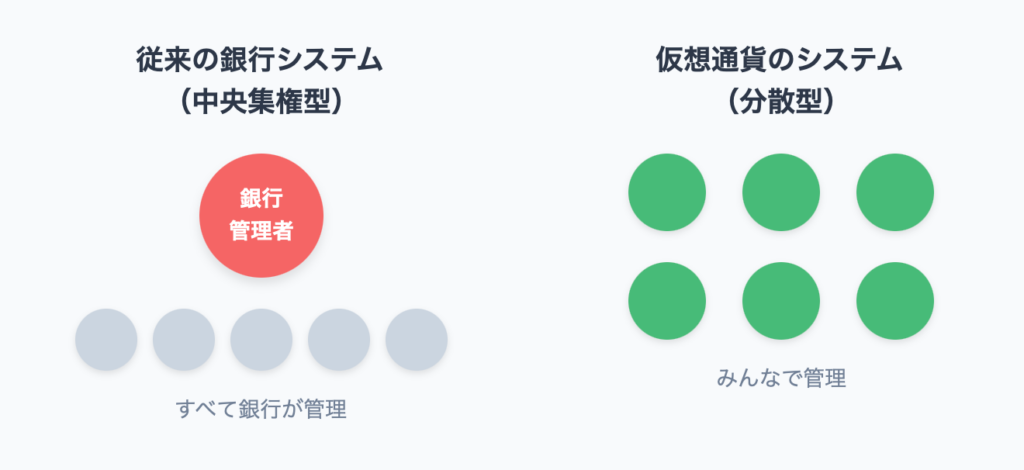しかし、仮想通貨にはそのような中央の管理者が存在しないのです。