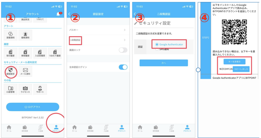 今回はBITPOINTのアプリを例に解説しますが、他の国内取引所でも2段階認証の基本的な流れは同じです。