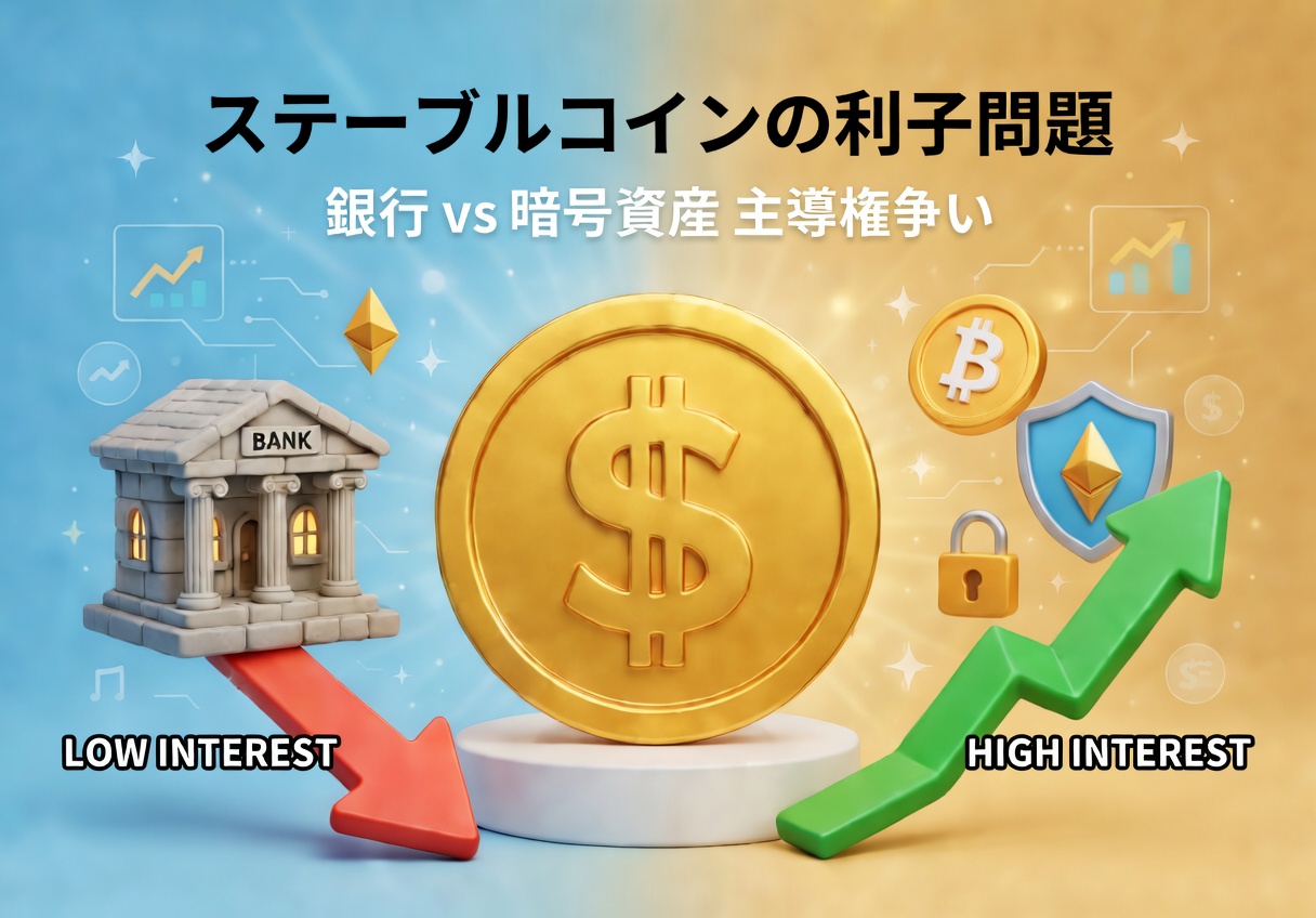 ステーブルコインに利子をつけるかどうか——一見地味なこの議論は、実はお金の支配権をめぐる銀行と暗号資産業界の本格的な戦いです。